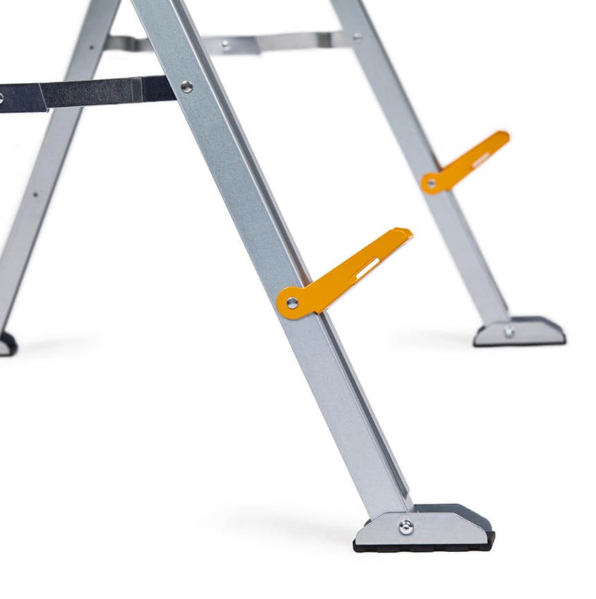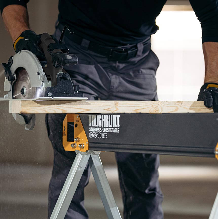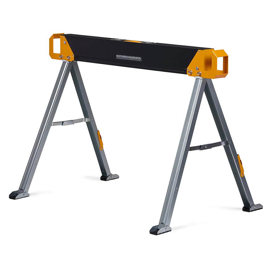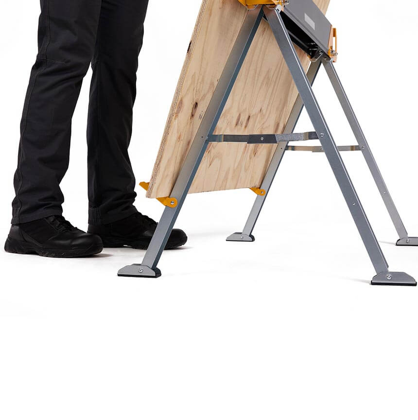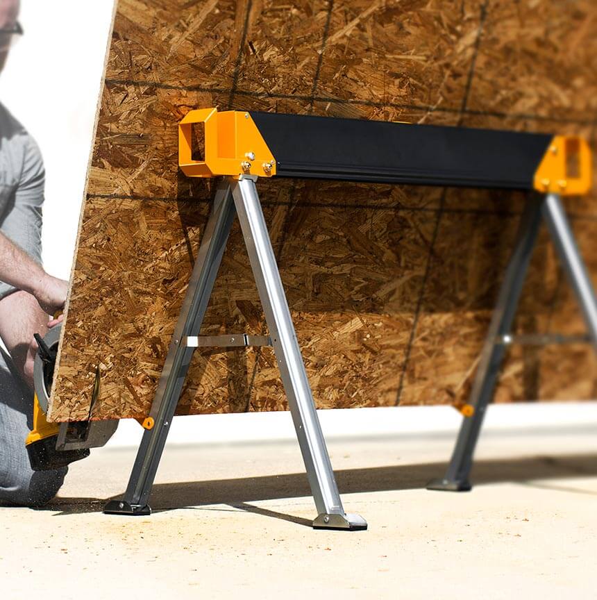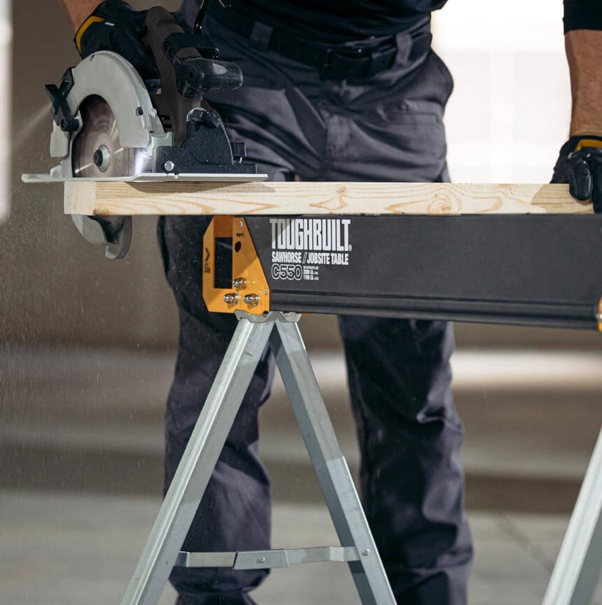 ToughBuilt-ov paket dveh trpežnih in robustnih mizarskih stolic, izdelanih iz 100% visoko kakovostnega jekla, z izjemno zmogljivostjo – ena stolica vzdrži 498 kg, v paru pa kar 998 kg. S podpornimi nogami 2×4, ki se združijo v trdno delovno mizo.