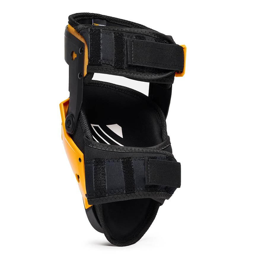 Stegenska podpora ohranja koleno ergonomsko na sredini znotraj kolenčnika. Spodnje platforme dvignejo goleni od tal in zmanjšajo pritisk na gležnje. Poveča porazdelitev pritiska za celodnevno udobje. Ščitnik za kolena se nikoli ne zavrti s kolena.