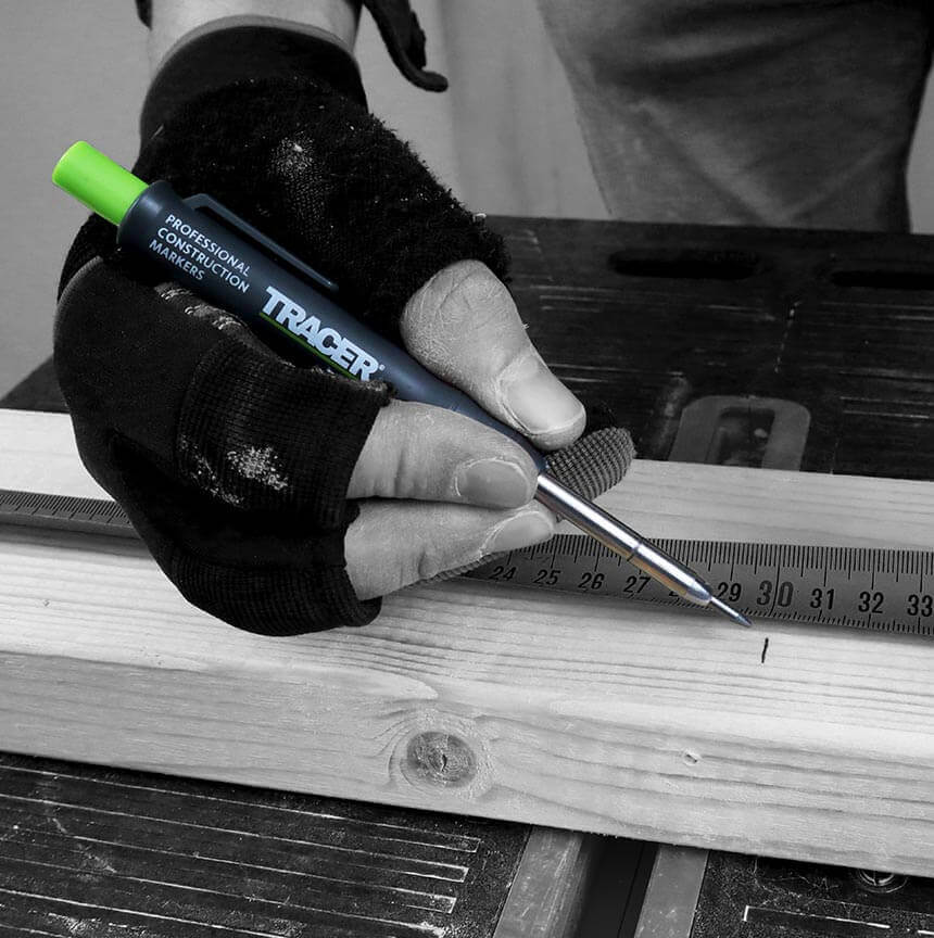 Trpežna konstrukcija, narejena za delovišča. 250 mm omogoča delo na večjih projektih. Globinski označevalni svinčnik je idealen za globinsko označevanje do 145 mm in splošno gradbeno označevanje. Konstrukcijski svinčnik lahko piše na večini površin, ne glede na to, ali so sijajne ali hrapave.