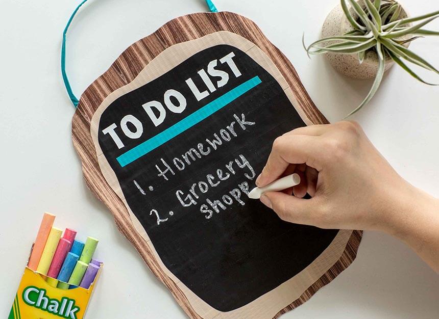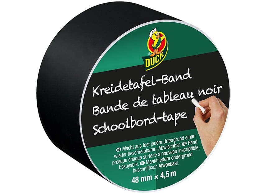 Trak na tabli lahko označite s kredo ali flomastrom za tablo. Z lahkoto ga je mogoče izbrisati in nanj ponovno napisati. Poiščite navdih in odkrijte našo široko ponudbo DUCK TAPE® lepilnih trakov!