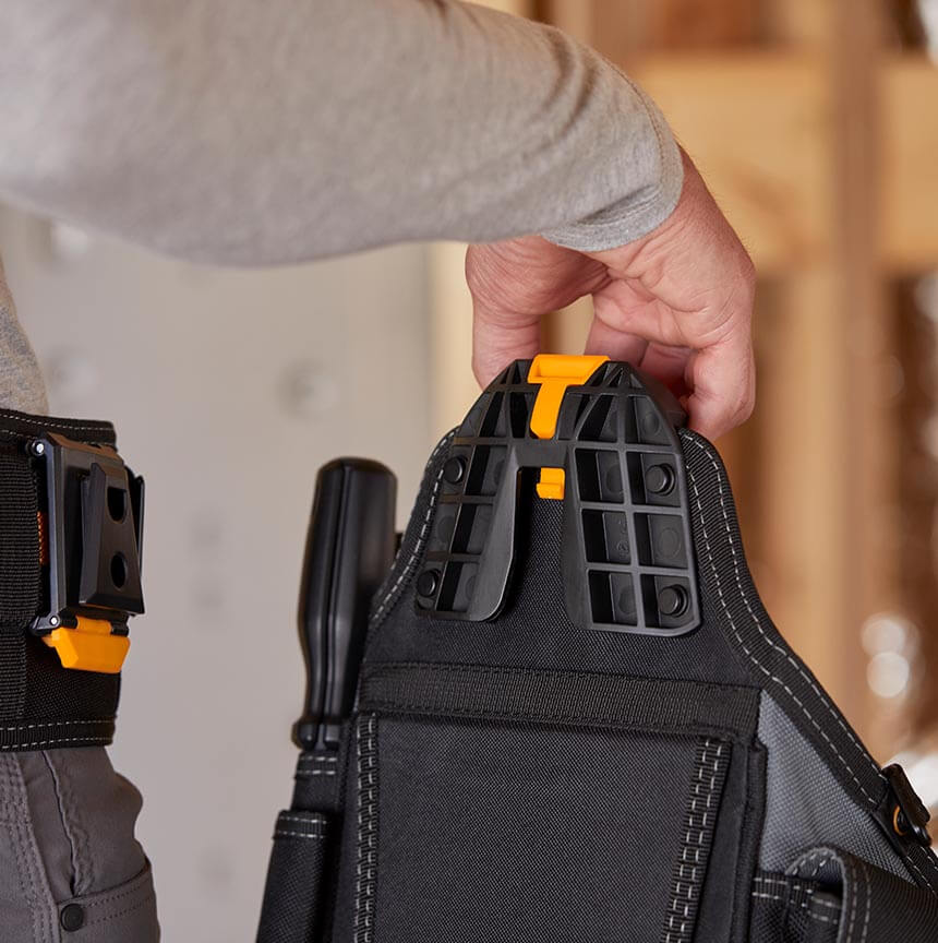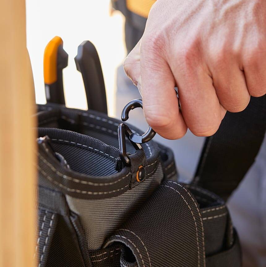 Ta zanesljiva torbica z robustno 6-plastno konstrukcijo™ in močno ojačitvijo z zakovicami prenese najzahtevnejše delovne pogoje. Patentirano središče ClipTech™ zaponka omogoča, da torbico pripnete in snamete s katerega koli pasu, obesite na naramnico ali postavite na stojalo na mizo ali tla, in imate torbico vedno pri roki.