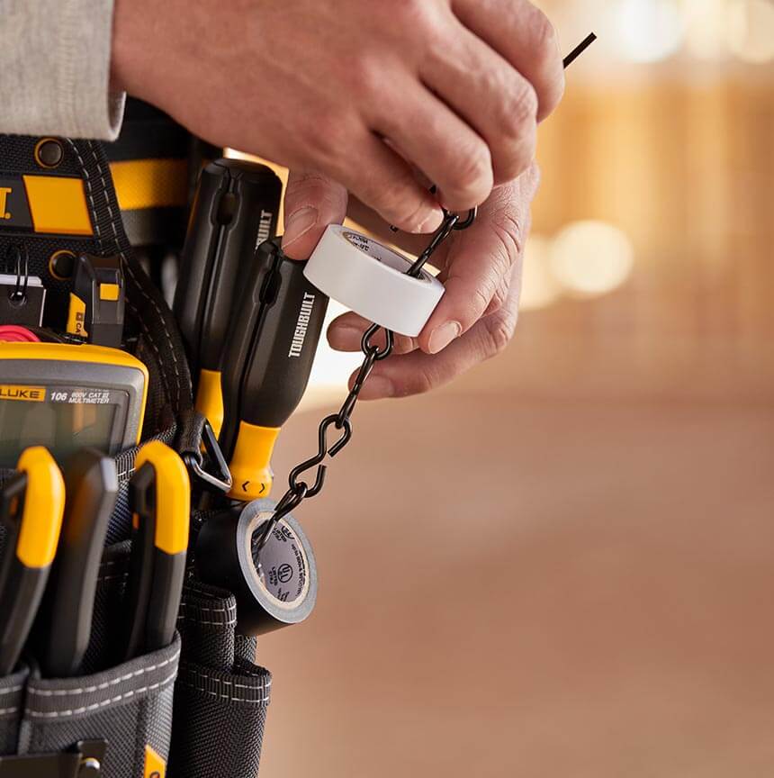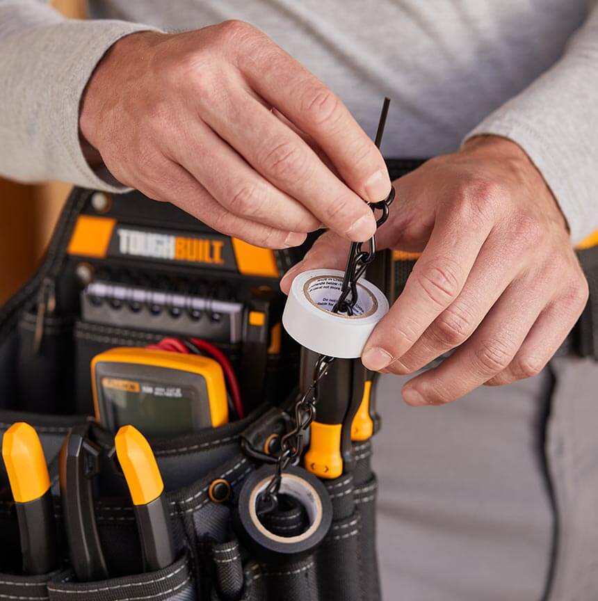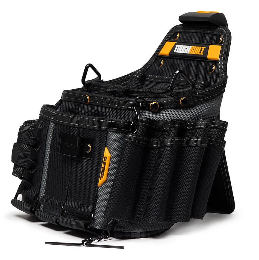 Ta torbica je zasnovana za nenehno spreminjajoče se potrebe profesionalnega električarja. Njenih 25 žepov in zank vključuje žep za tester žice, držalo za svetilko po meri, 3 nastavljive žepe za orodje, žep za beležko, verižico za lepilni trak in 9 zank za izvijače.