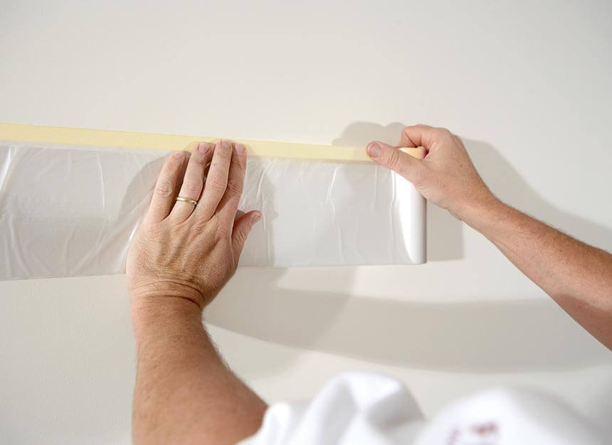 Kombinacija zaščitne folije in krep lepilnega traku.